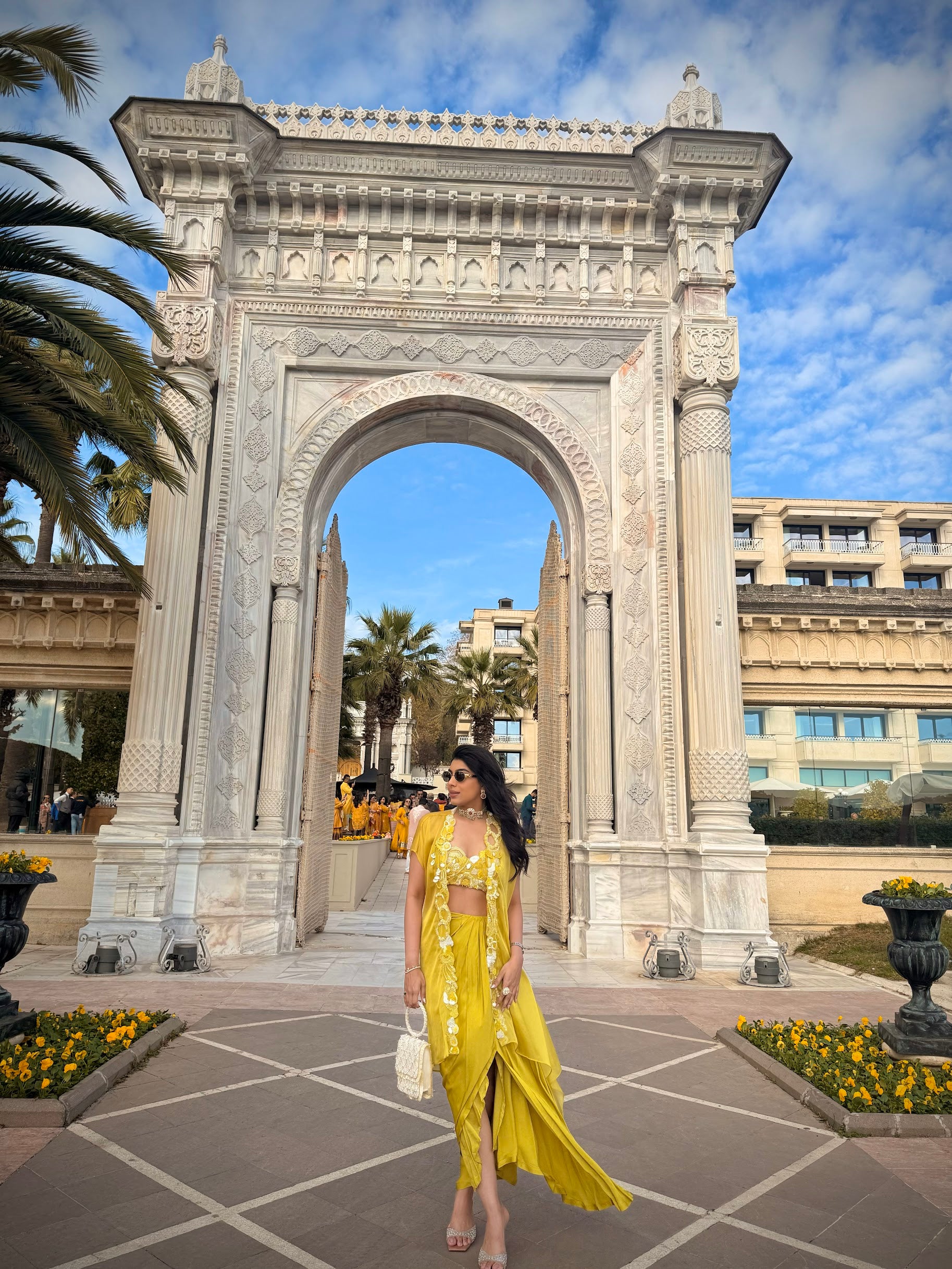 Lime yellow Cutwork cape set With 3d Embroidered Details