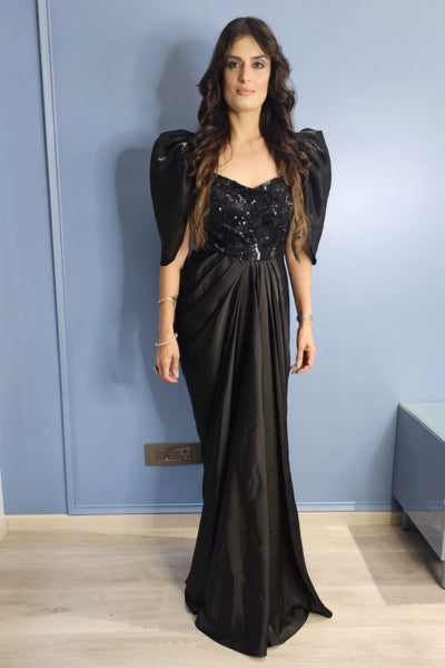 Fabric- Banana crepe ( stretchable ) Fit- Fitted at bust with flared hemline consisting of pleats on one side and slit on the other side giving a flattering look Classic silhouette which suits al...
