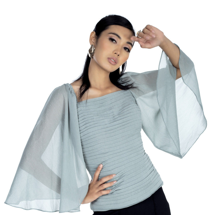 - Flared sleeves with elasticated shoulder- can be adjusted to off-shoulder as well