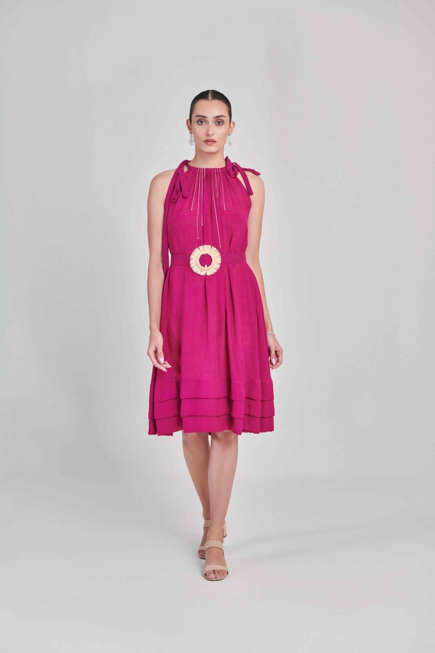 - Featuring easy breezy dress perfect for vacations including a detachable rafia buckle belt