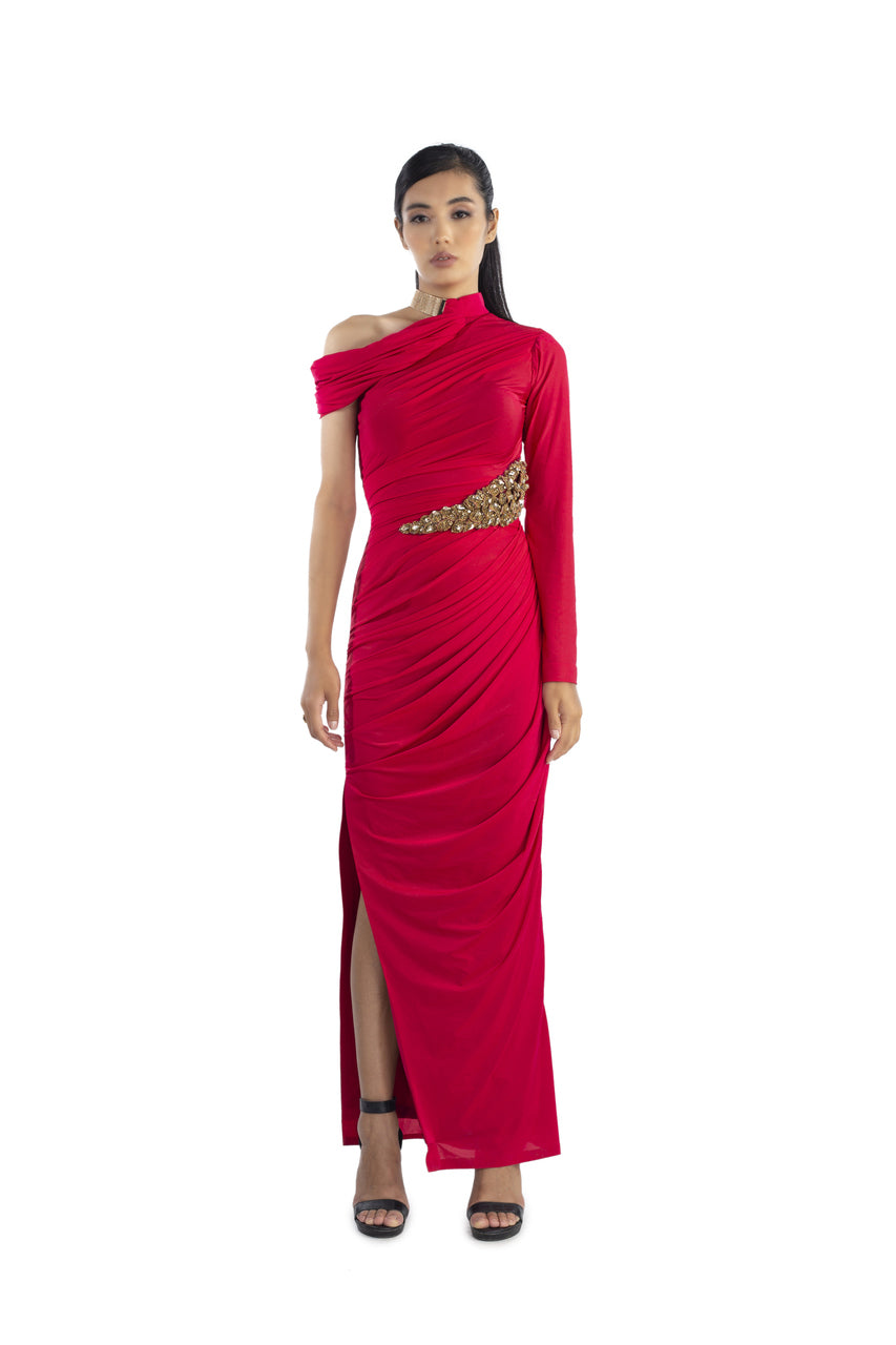- Fits that make you feel confident and empowered. This one is our second version of hotseller Rosea drape dress with 3-D hand embroidery on waist and metallic buckle on the neck.