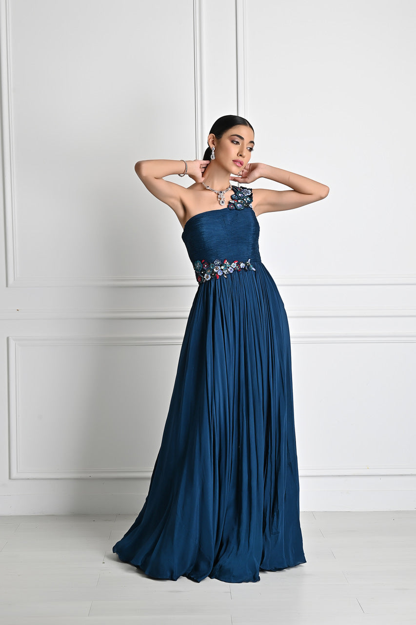 Teal flower applique gown